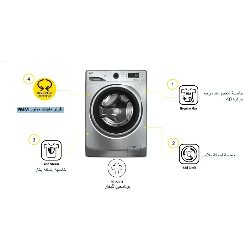 غسالة ملابس اتوماتيك 8 كجم 1200 لفة ديجيتال أنفرتر زانوسىZWF8241SS7