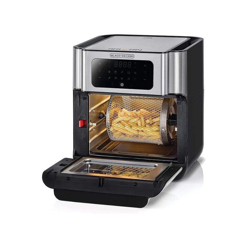 قلاية هوائية رقمية بلاك اند ديكر – 12 لتر بتحكم ديجيتال و10 برامج مسبقة – فضي – موديل AOF100-B5