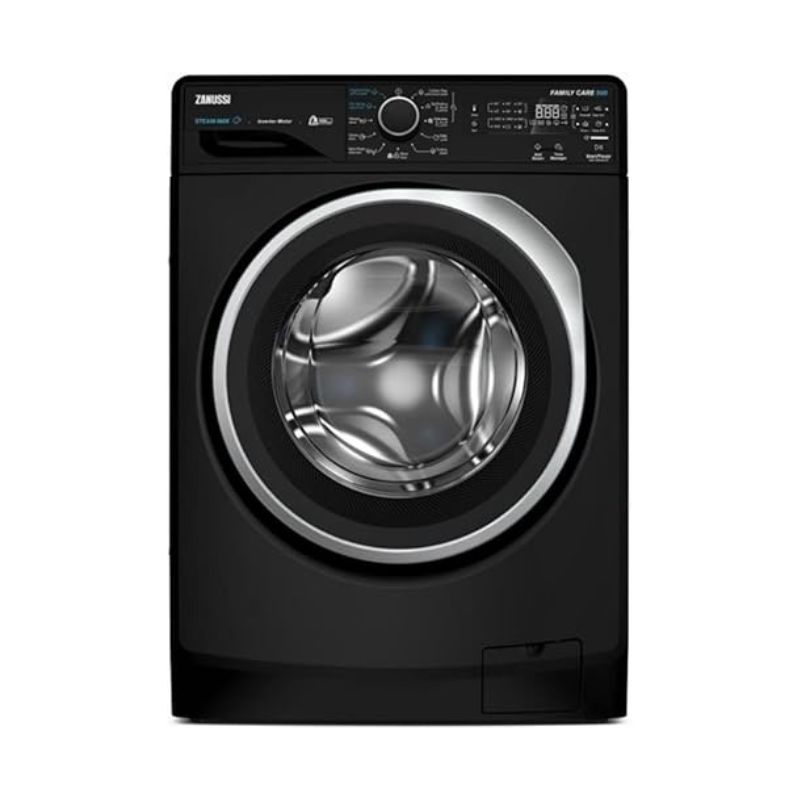 الغسالة: سعة 8 كجم، سرعة دوران 1200 لفة/دقيقة، تقنية الانفرتر لتوفير الطاقة، نظام بخار مزدوج للتعقيم وإزالة التجاعيد، باب كبير XXL، برامج متعددة تشمل الغسيل السريع والمضاد للحساسية، لون فضي بتشطيب أسود مطفي.