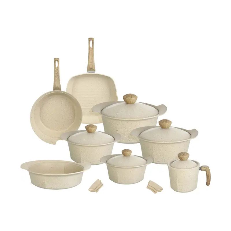 طقم حلل جرانيت من إيديال هوم – 17 قطعة – بيج – صناعة تركية