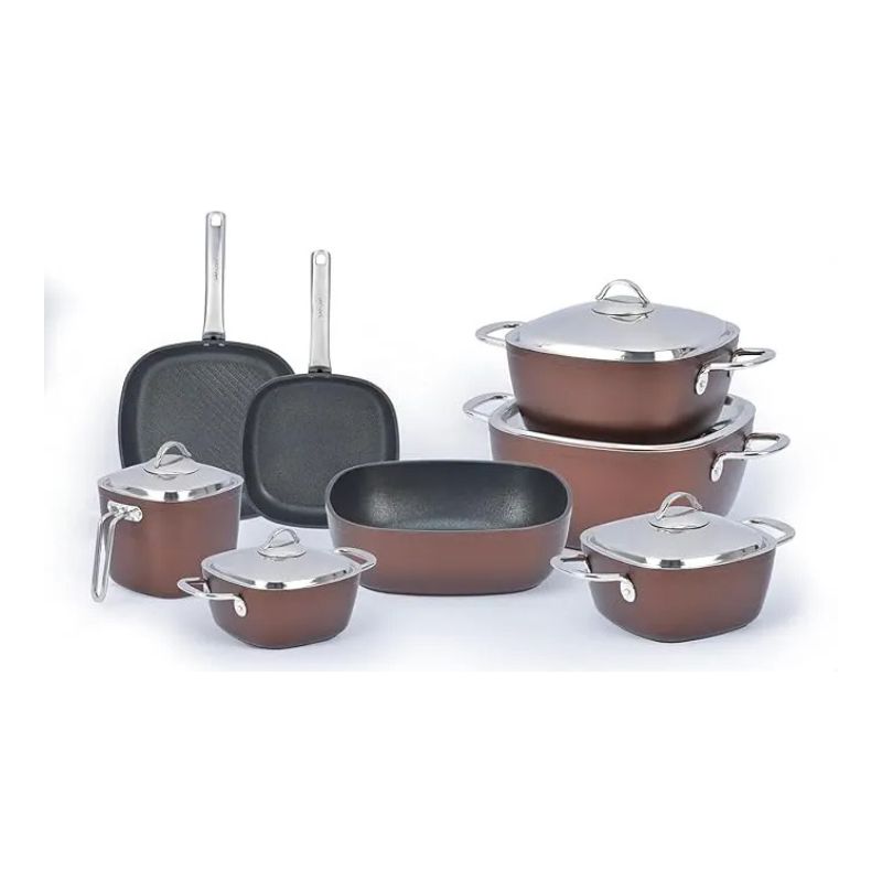طقم حلل تيتانيوم سافلون – 13 قطعة – بيج