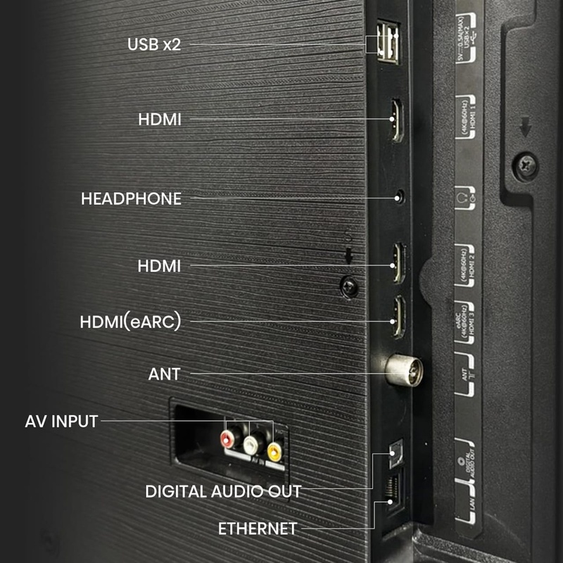 تتوفر بالشاشة مداخل HDMI و USB لتوصيل الأجهزة المختلفة، بالإضافة إلى دعم Bluetooth لتوصيل السماعات أو الأجهزة الخارجية.